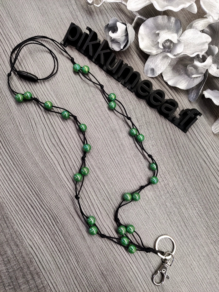 Avainkaulanauha akryylihelmillä 90cm (havu)