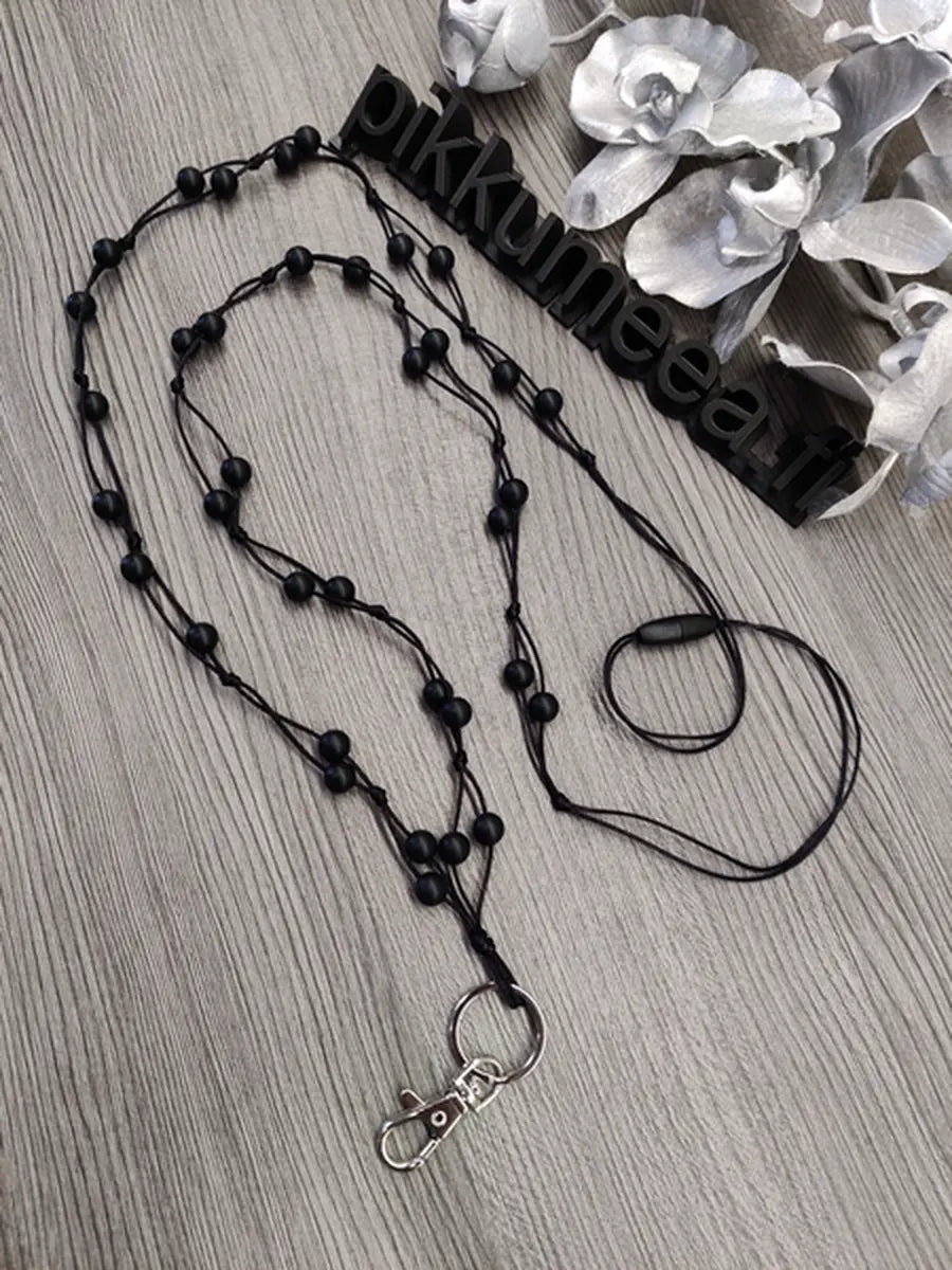 Pikkumeean silikonihelmistä valmistettu olan yli avainnauha (musta - kevyt malli) eri pituuksilla. Avainnauha helpottaa arkeasi ja tuo ripauksen persoonallisuutta tyyliisi. Kaikki avainnauhamme ovat 100% suomalaista käsityötä, turvallisista ja laadukkaista materiaaleista.