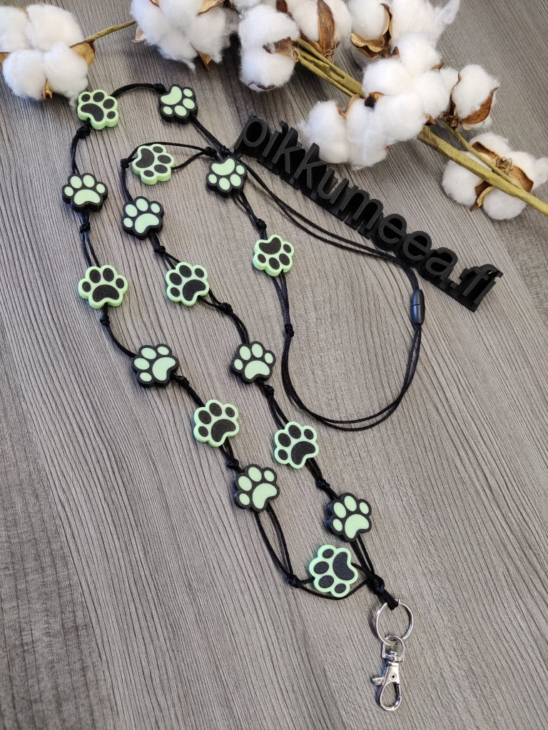 Pikkumeean 3D-tulostamalla PLA:sta valmistettu olan yli avainnauha Pimeässä hohtava tassu eri pituuksilla. Avainnauha helpottaa arkeasi ja tuo ripauksen persoonallisuutta tyyliisi. Kaikki avainnauhamme ovat 100% suomalaista käsityötä, turvallisista ja laadukkaista materiaaleista.