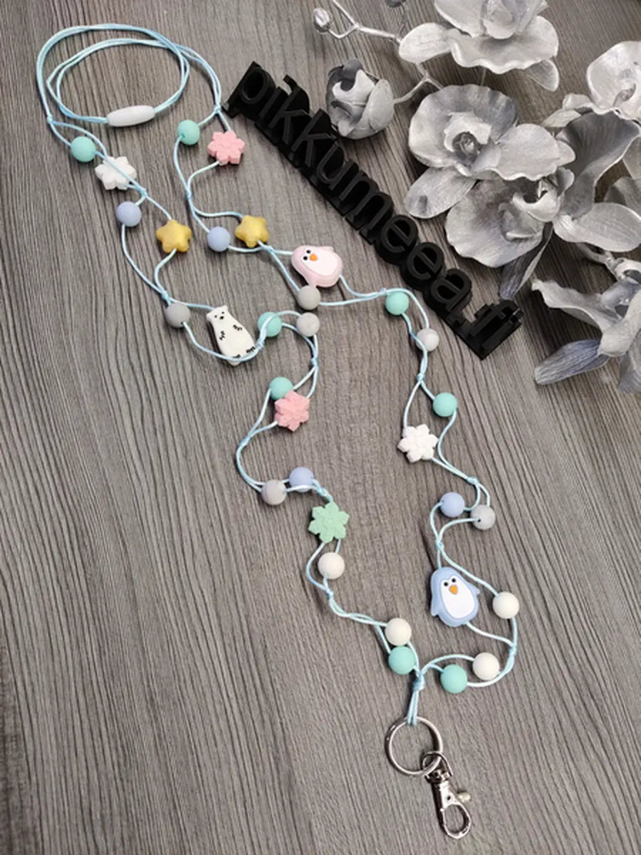 Pikkumeean silikonihelmistä valmistettu olan yli avainnauha Satu 18. Avainnauha helpottaa arkeasi ja tuo ripauksen persoonallisuutta tyyliisi. Kaikki avainnauhamme ovat 100% suomalaista käsityötä, turvallisista ja laadukkaista materiaaleista.