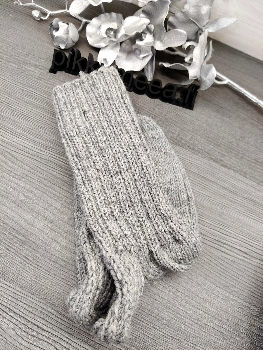 Upeat pikkumeean villasukat ovat neulottu huolellisesti rakkaudella 100% korkealaatuisesta vaaleanharmaasta Novitan 7 veljestä langasta.